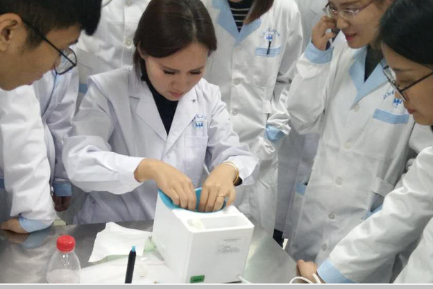 本次课程的主要内容是《RGP的验配》,明靓子老师详细地给大家讲述了RGP镜的设计原理、验配流程及护理注意事项,讲授完理论知识后,明靓子老师又带领同学们进行了RGP镜配戴及配适评估的实训,并且自带了RGP镜抛光机给同学们试用,通过两个同学的试戴,使同学们对RGP的验配有了更清晰直观的认识。