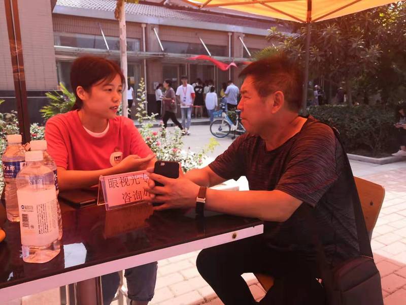 827日,我校迎来了充满朝气的2019级新生,光明眼科学院为学校迎新工作添砖加瓦,在行业学院党总支安排下,我院派遣了两位专业老师前往仁智书院迎新接待处,为眼视光专业新生及家长们解答专业疑惑,介绍专业特点。