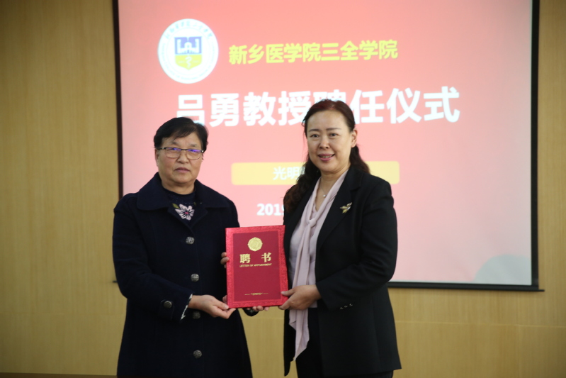 杜华贞对吕勇教授聘任为光明眼科学院特聘教授表示感谢和欢迎。她表示,光明眼科学院虽然在教育教学工作方面作出一些成就,但是在学科建设、科研能力等方面仍需努力,希望吕勇教授能够对年轻教师进行指导,多多传授临床和教学经验,帮助青年教师更快成长。随后,杜华贞为吕勇颁发新乡医学院三全学院光明眼科学院特聘教授聘书。