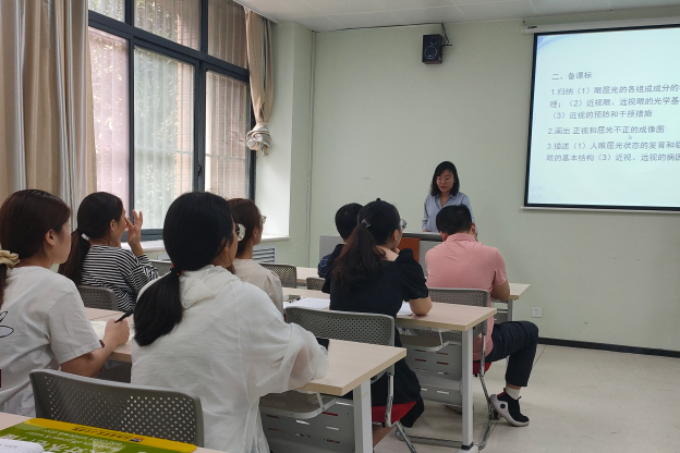 一、程君瑞老师集体备课。由教师程君瑞展开集体备课,本次备课题目为:第四章:屈光和屈光不正。上课学生为19级本科,共4个班113人,程君瑞老师以说课的形式为大家分享如何为学生讲解这节课。1.在备教材方面讲到本节课的内容:可以复习部分上学期光学的知识,同时可以预习部分视光学理论与方法眼科学的知识。2.备课标方面:与近视防控与干预、近视、远视相联系。3.备学生:针对2019级本科大二学生进行。4.备教法:通过讲授、人眼模型的演示和自主学习的方法进行备教。5.备学法:通过预习、听课和用思维导图进行总结复习的方法进行备学。6.备教学的过程:首先通过对近视现状的讲述进行导入,然后进行章节内容讲述包括眼球光学、正视与屈光不正、近视和远视,最后进行总结和提问。7.课后思考:留下近视配镜的原则是什么?等几个问题进行课后思考。8.通过公众号的一些内容进行延伸学习。最后进行讨论几位老师进行一些提问和见解。