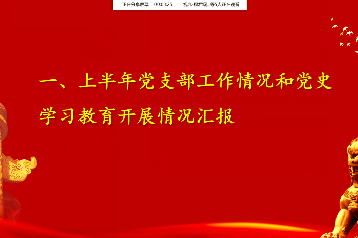 会议主要分四个环节有序进行:一、党支部书记汇报上半年党支部工作情况和党史教育学习开展情况;二、批评与自我批评;三、党员谈心谈话;四、交纳党费。