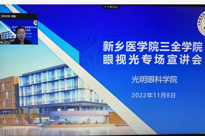 11月8日,为加强校企合作,推荐就业岗位,增加学生就业机会,光明眼科学院开展2022年秋季空中双选会眼视光专场宣讲会,通过腾讯会议线上举行并顺利召开。