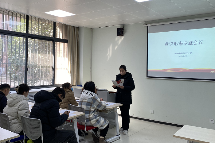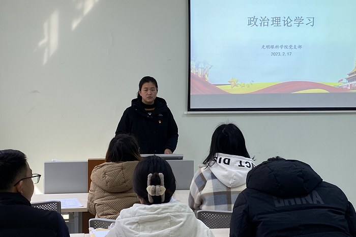 2月17日,光明眼科学院党支部在低视力实训室进行2月份主题党日活动、政治理论学习暨意识形态专题会议,会议由党支部副书记张小欢主持,全体党员教师参加。
