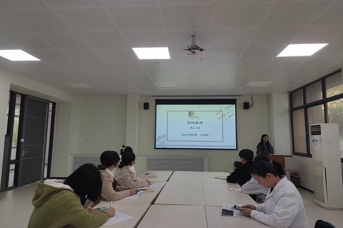 接下来,由孙亚鑫老师进行集体备课,集体备课内容是《双眼视觉学》的调节及AC/A相关内容,授课对象为2023级专升本眼视光学生。孙亚鑫老师从教学理念、教学重难点、课程设计以及课后反思等方面进行了阐述,详细介绍了本次课程的学习目标及重难点,并重点阐述了教学过程中针对不同知识点的教学方法,对授课中的疑问与各位老师进行了充分的讨论,并演示了相应教学内容。