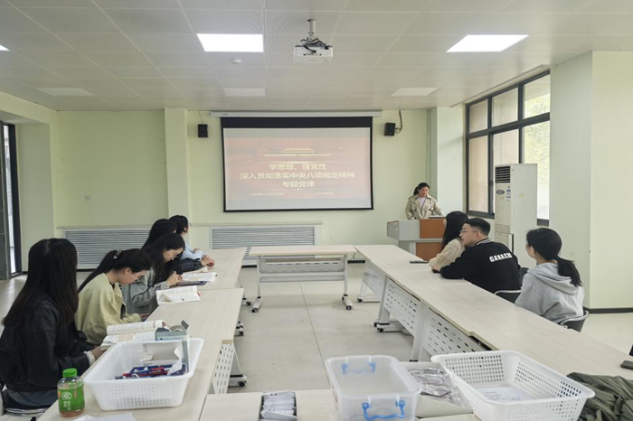接着由党支部副书记张小欢结合围绕“学思想 强党性 深入贯彻落实中央八项规定精神”讲授专题党课。 详细解读了中央八项规定精神的重要意义、它不仅是转变作风的切入口和动员令,更是密切党群干群关系、厚植党的执政根基的关键之举。从规范公务接待到精简会议活动,每一项规定都彰显着厉行节约、反对浪费的决心,为党员干部划定了行为红线。